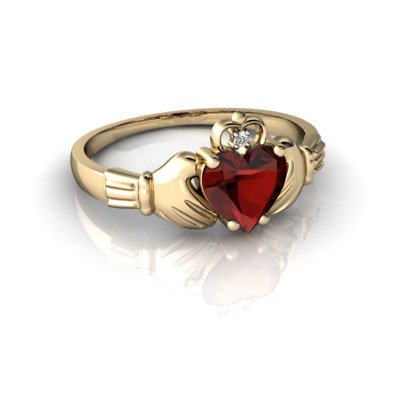14kt Gold Garnet and Diamond 6mm Heart Claddagh Ring