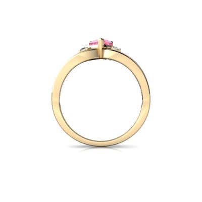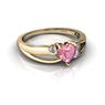 » 14kt Gold Lab Pink Sapphire and Diamond 5mm Heart Split Band Swirl Ring