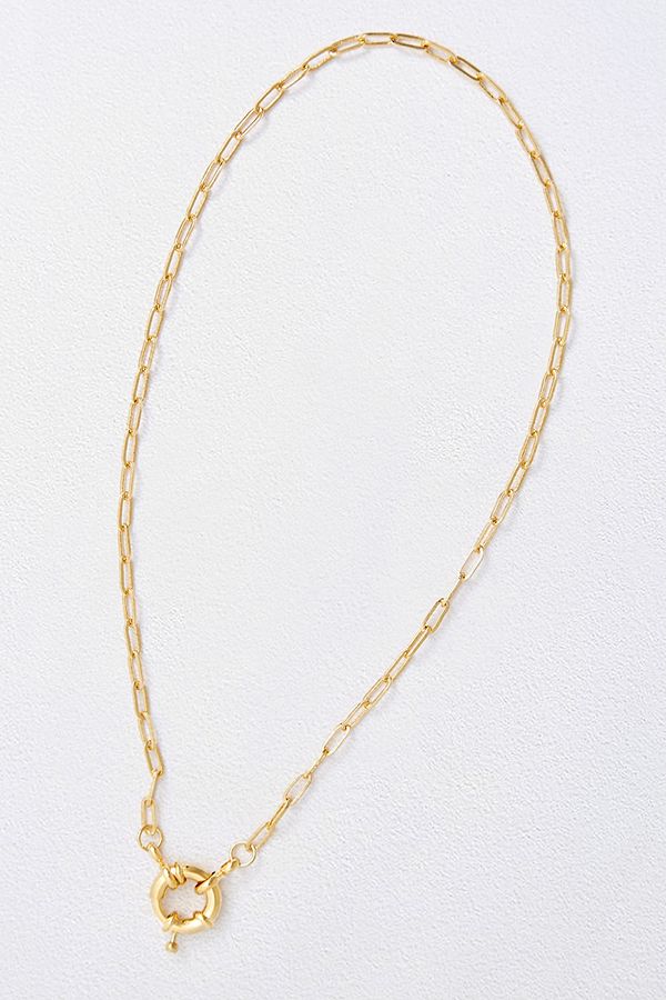 Simple gold necklace from Cali-based Five And Two Jewelry that's perfect for layering. Wear as a necklace or a double wrap bracelet. Finished with a clasp closure.