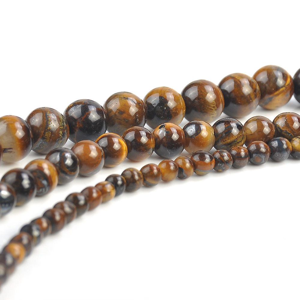 » Natural Gemstone Tiger's Eye Round Spacer Loose Beads 4mm 6mm 8mm 15.5" Strand