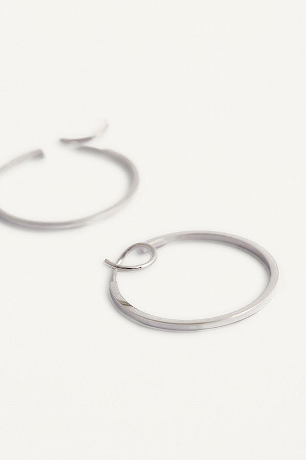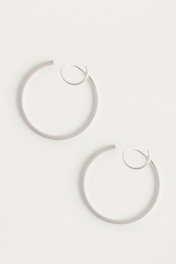 An update on the classic hoop earrings from The Boyscouts. Sleek silver silhouette with an open construction and complete with a twist detail.